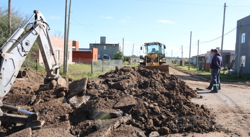Realizan trabajos de cordón cuneta y desagües en el barrio Belgrano