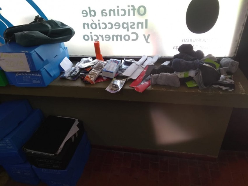 Luego de identificar y requisar la mercadería que constaba de ropa interior, hilos y agujas y linternas, entre otros elementos, se solicitó apoyo de la patrulla de la Policía Comunal, quienes junto a personal de Tránsito constataron que no poseían la documentación correspondiente del vehículo, el cual también fue secuestrado.