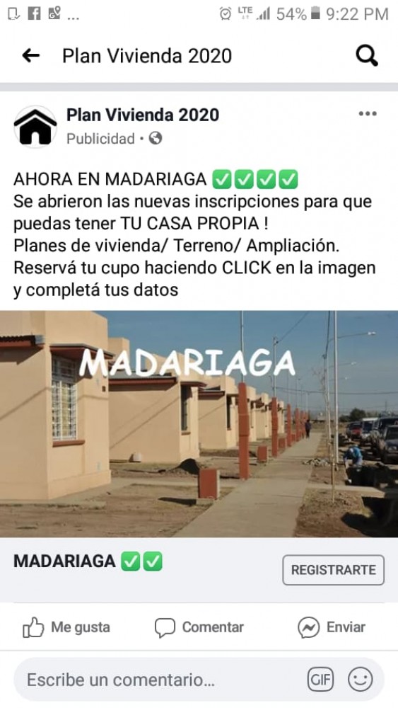 -Cualquier Plan de Viviendas que sea Municipal se publica obligatoriamente en su página oficial https://www.madariaga.gob.ar/, si no se publica allí entonces no proviene del Municipio.
