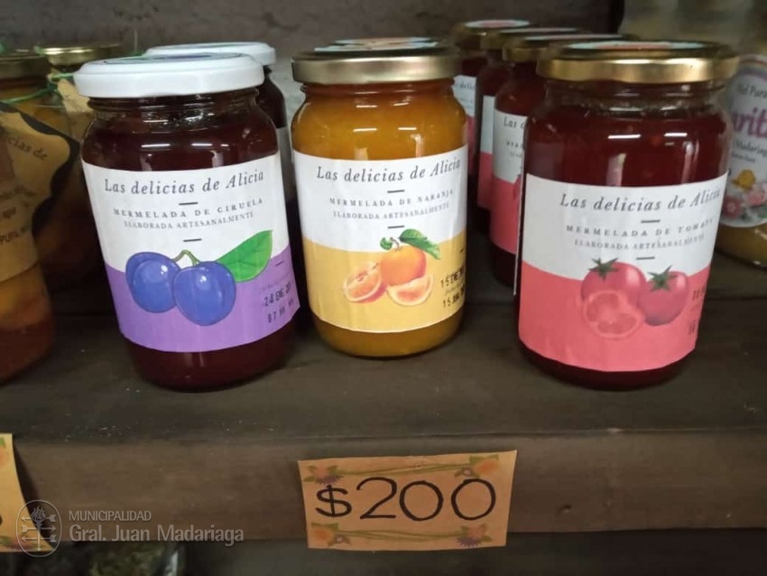 También huevos de campo, dulces y mermeladas, miel, alfajores, hierbas aromáticas, artesanías textiles en reciclado, cerámicas y una gran variedad de productos madariaguenses.