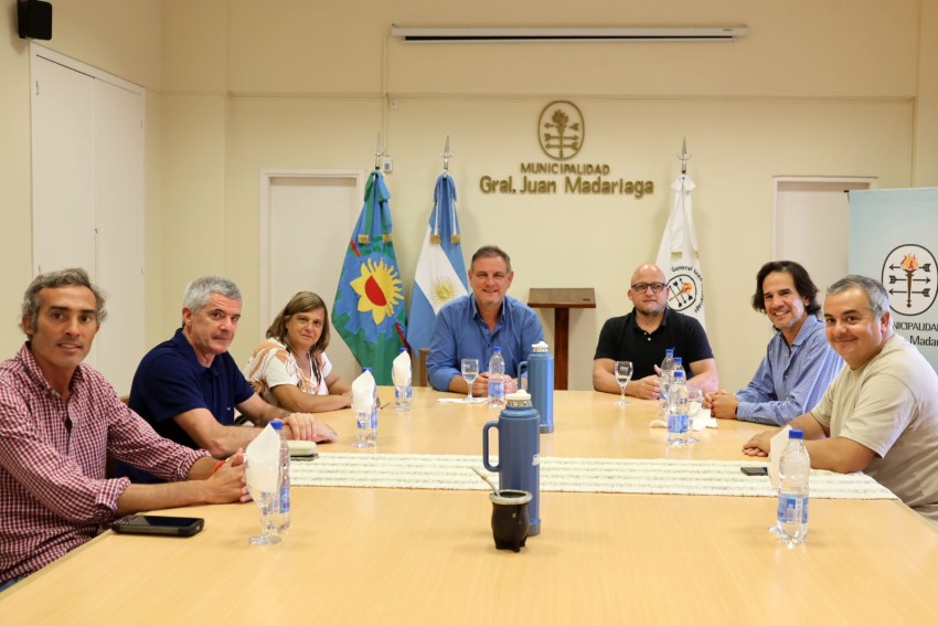 El intendente Carlos Esteban Santoro, junto a funcionarios del gabinete, se reunió con el gerente de Telpin, el Ing. Martín Pagano, el subgerente Leandro Laudano y Oscar Gómez, del área de proyectos.