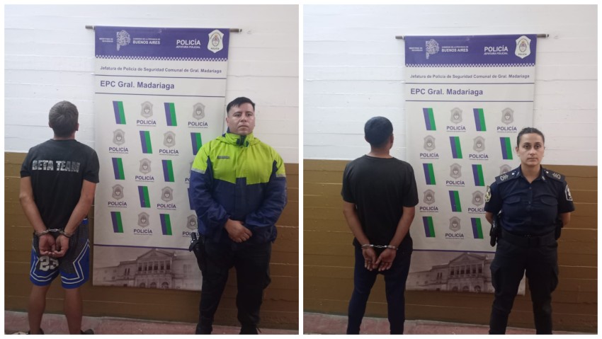 Con las características brindadas por el personal de la Secretaría de Seguridad, la policía inició un rastrillaje por la zona y logró dar con los dos hombres involucrados identificados como Michia Diego Emanuel (22) y Michia Santiago Ariel (25); uno de ellos llevaba una mochila con el material sustraído.