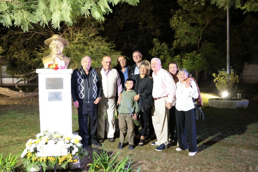 Uno de los momentos más significativos fue la colocación de una ofrenda floral a cargo de José Schero y su esposa, amigos de Argentino Luna, quienes año tras año viajan desde Bahía Blanca para rendir homenaje.