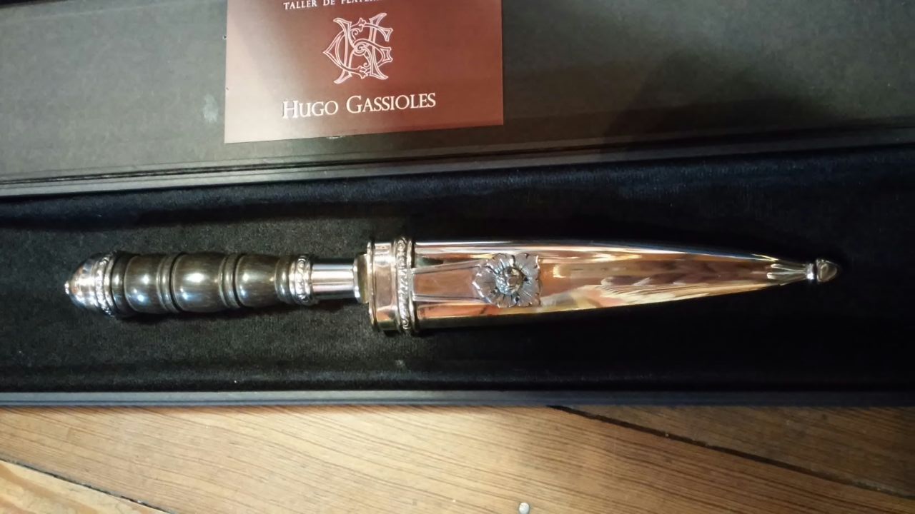 El artista local, Hugo Gassioles, donó un cuchillo de plata y ébano para rifar el domingo en la jineteada que se realizará en el marco de la “Semana Argentino Luna” en el campo de jineteada del Centro Tradicionalista Gauchos de Madariaga.